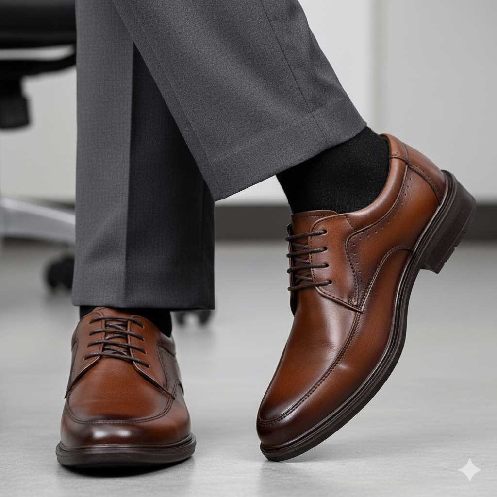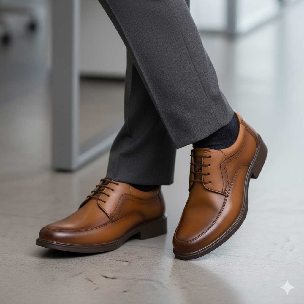 کفش چرم اصل تبریز با رویه چرم طبیعی، آستر چرم طبیعی یا چرم صنعتی، کفی طبی چرم طبیعی یا کفی سوئیت پارچه ای و زیره تزریق