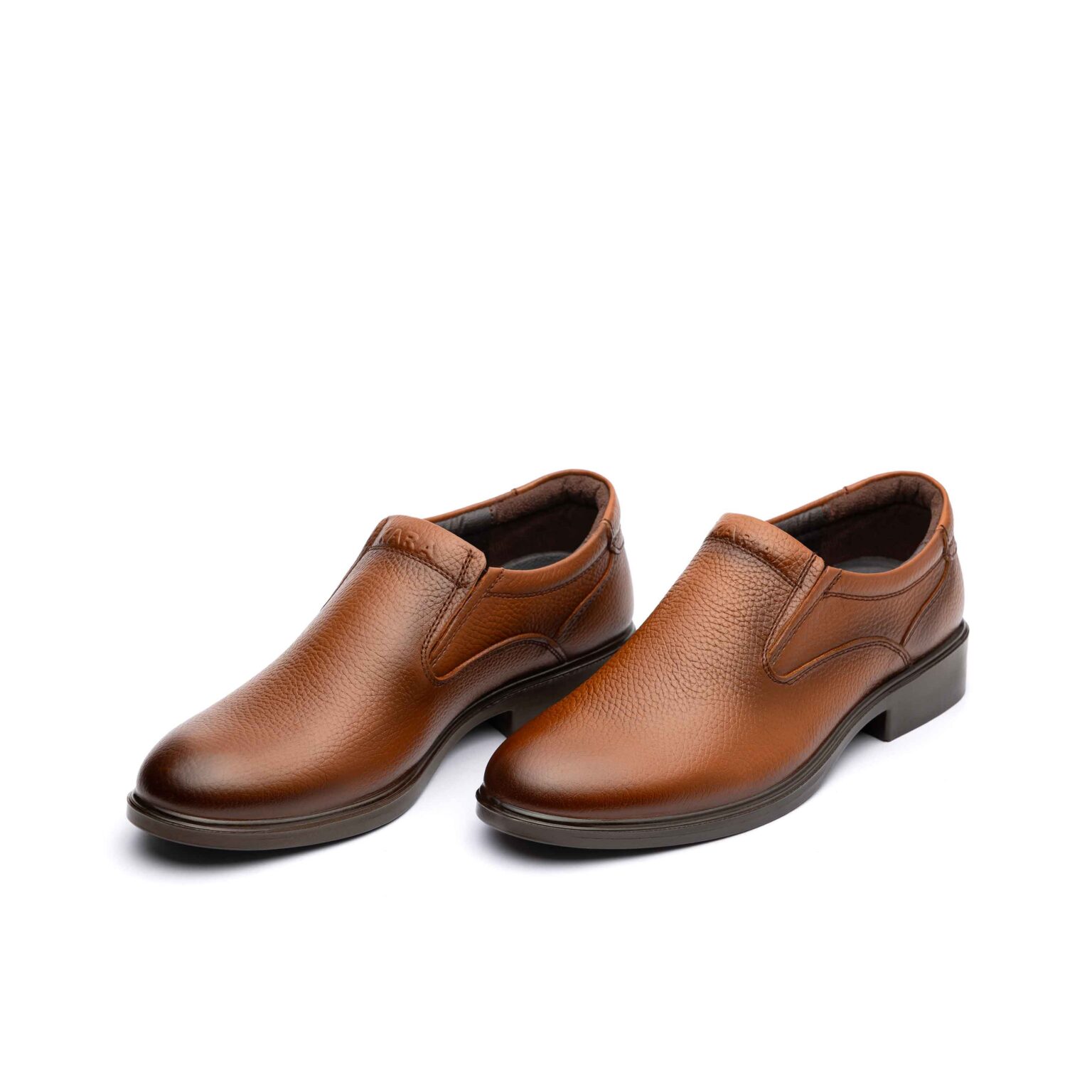 کفش مجلسی مردانه چرم آوالون تابستانی بی بند-عسلی-تبریزپا
