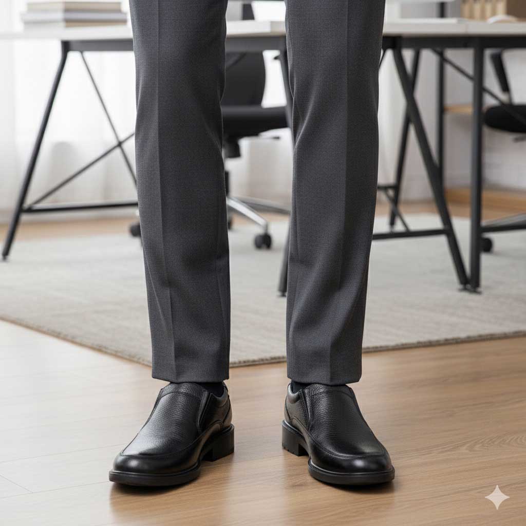 - کفشهای چرمی معمولاً بعد از مدتی کمی جا باز میکنند، پس بهتر است نیم سایز کوچکتر انتخاب شوند.