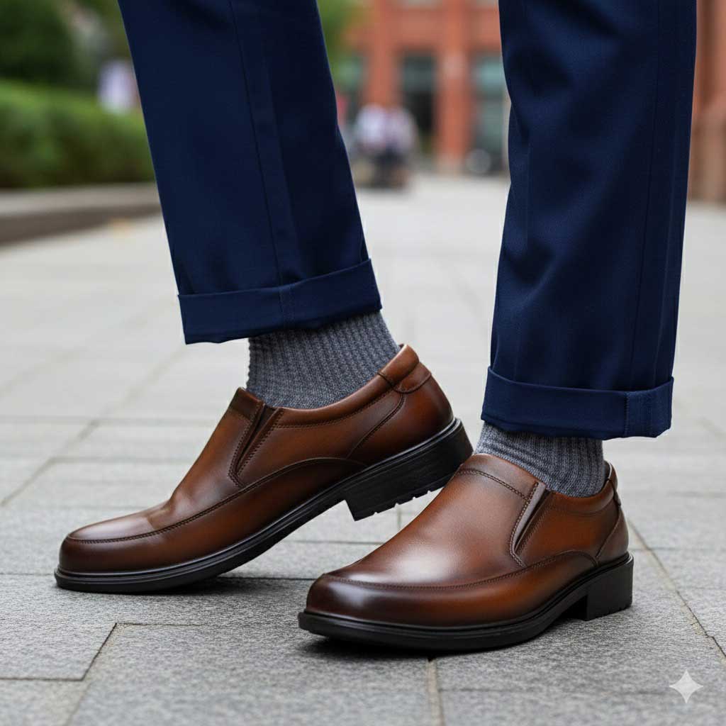 کفش چرم اصل تبریز با رویه چرم طبیعی، آستر چرم طبیعی یا چرم صنعتی، کفی طبی چرم طبیعی یا کفی سوئیت پارچه ای و زیره تزریق