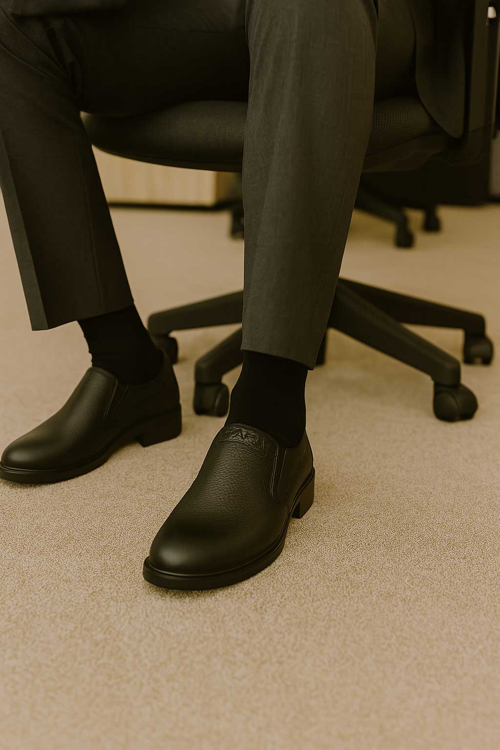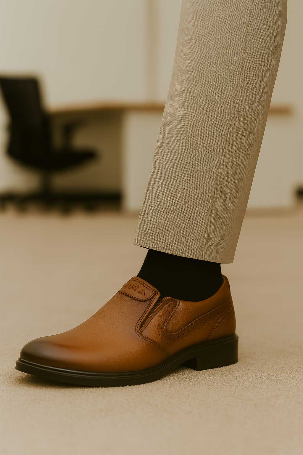 • کفش چرم اصل تبریز با رویه چرم طبیعی، آستر چرم طبیعی یا چرم صنعتی، کفی طبی چرم طبیعی یا کفی سوئیت پارچه ای و زیره تزریق